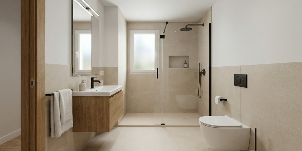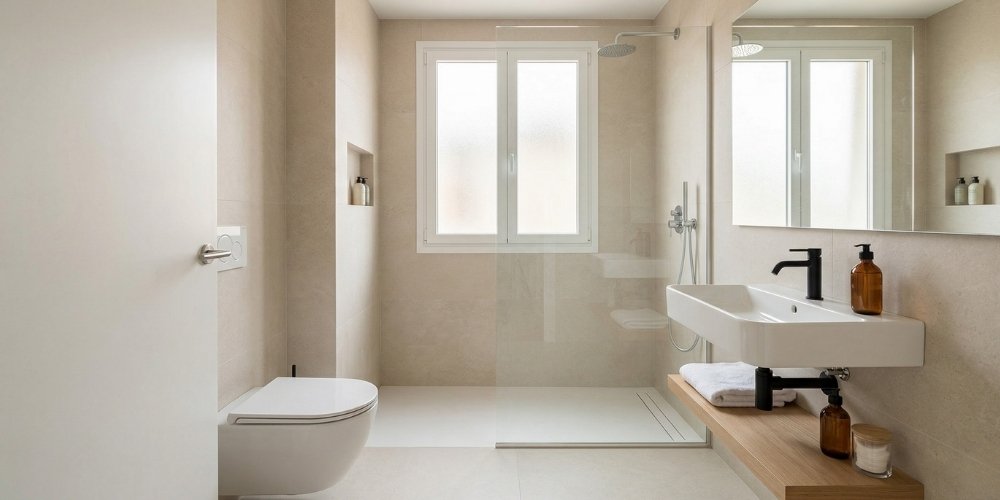 El objetivo es garantizar un uso cómodo (entrada, giro, acceso a lavabo e inodoro), limpieza sencilla y una sensación de amplitud real. Para ello, conviene trabajar en este orden: condicionantes → distribución → elección de equipamiento.